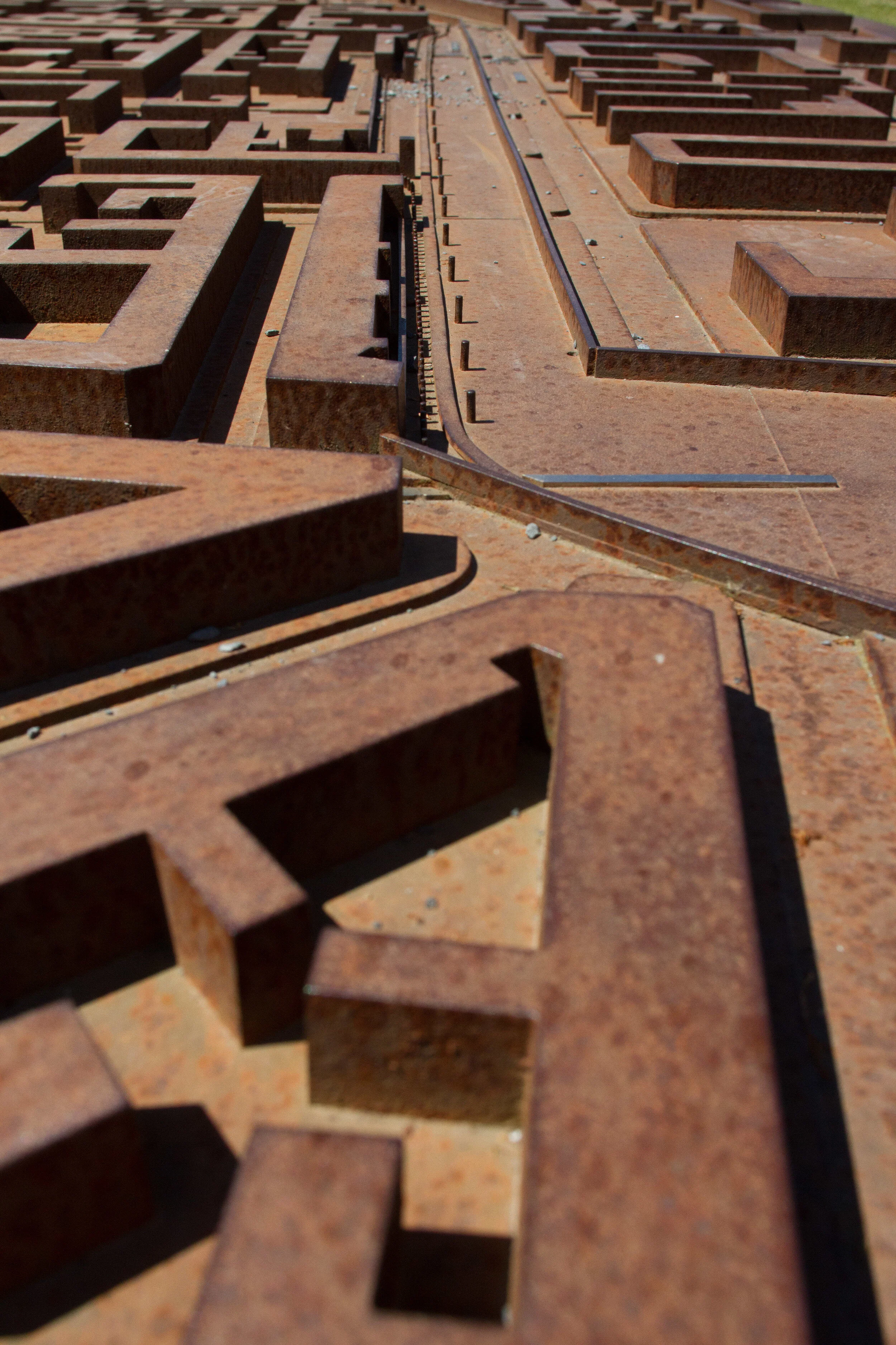 Outdoor corten steel model on Bernauer Strasse showing the line of the Berlin Wall through the Prenzlauer Berg neighbourhood. Image by John Dawson
