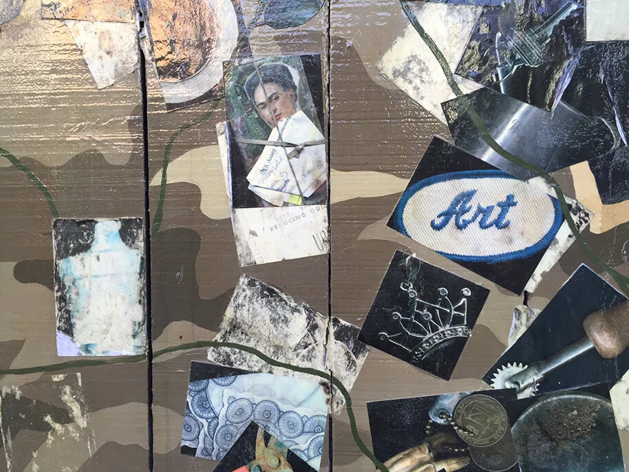 Detail of collage mural in Balmy Alley, Mission District, San Francisco